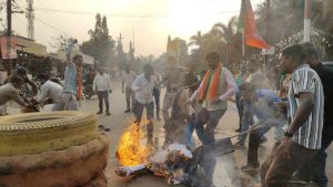 नारायणपुर में कांग्रेस के अर्धनग्न प्रदर्शन के विरोध में भाजपा ने किया पुतला दहन
