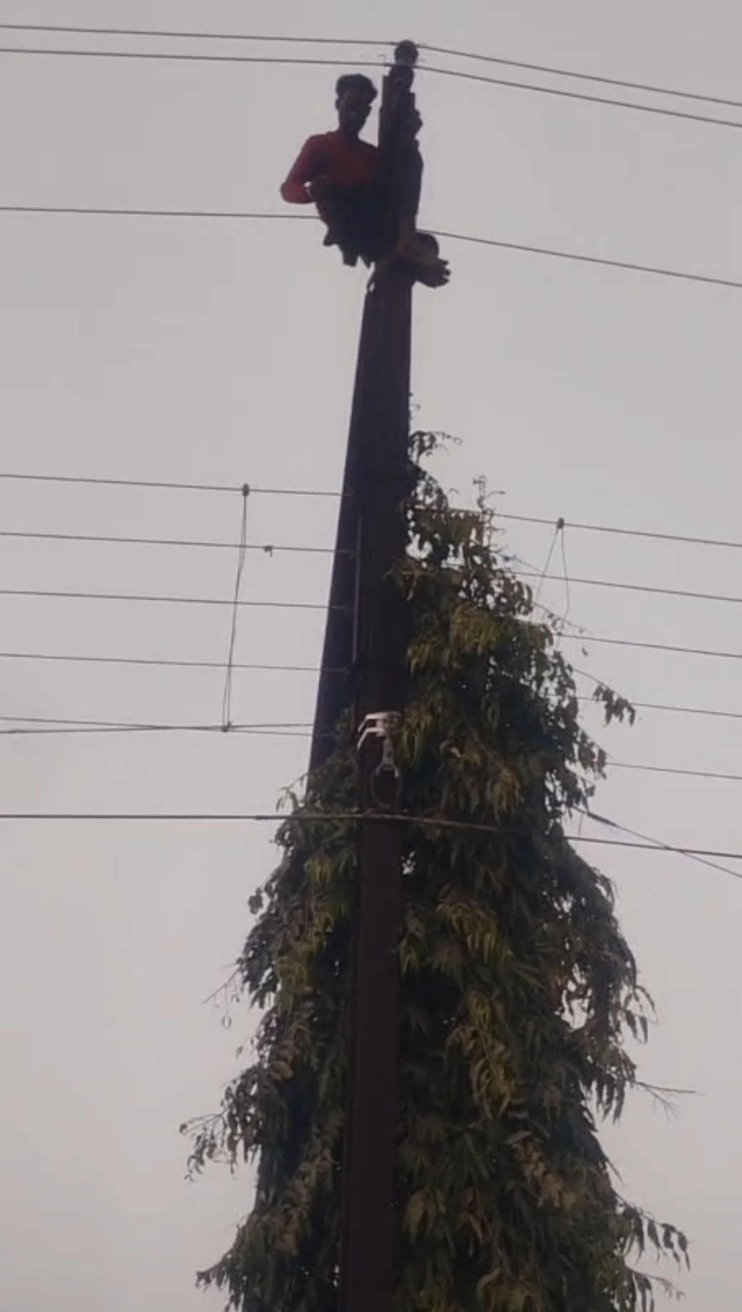 मानसिक रूप से पीड़ित युवक जान जोखिम में डालकर बिजली खंभे में चढ़ा मचा हड़कंप