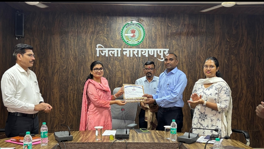 कलेक्टर नम्रता जैन ने उत्कृष्ट कार्य के लिए प्रधान अध्यापक रामकीर्तन मरकाम को किया सम्मानित